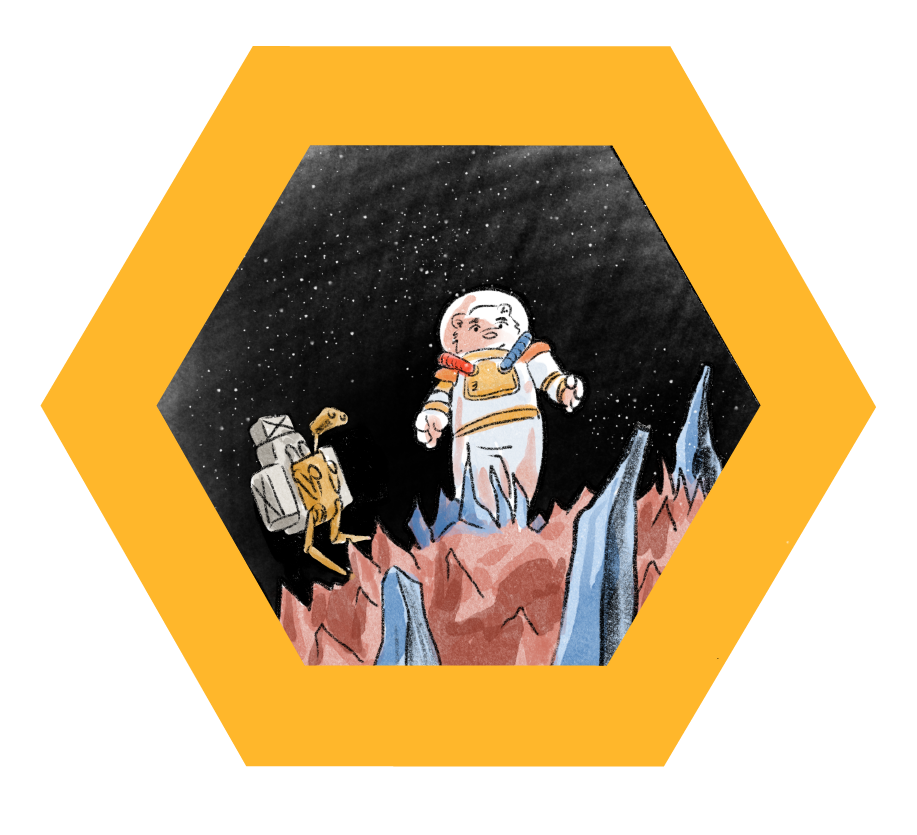 Пока первопроходец исследует неизведанные уголки новой планеты, его сопровождает верный спутник – двуногий дрон, который должен быть надежным защитником и поддержкой во всех испытаниях. Он напоминает помощников, которые есть у каждого школьника на Берлоге, только требования к надежности и экономичности в его случае куда серьезнее. Многие из этих роботов, послужив в космосе, возвращаются на Берлогу и отправляются на пенсию. Ведь медведи подобно нам умеют привязываться к неодушевленным предметам и ценят верность и преданность двуногих дронов.